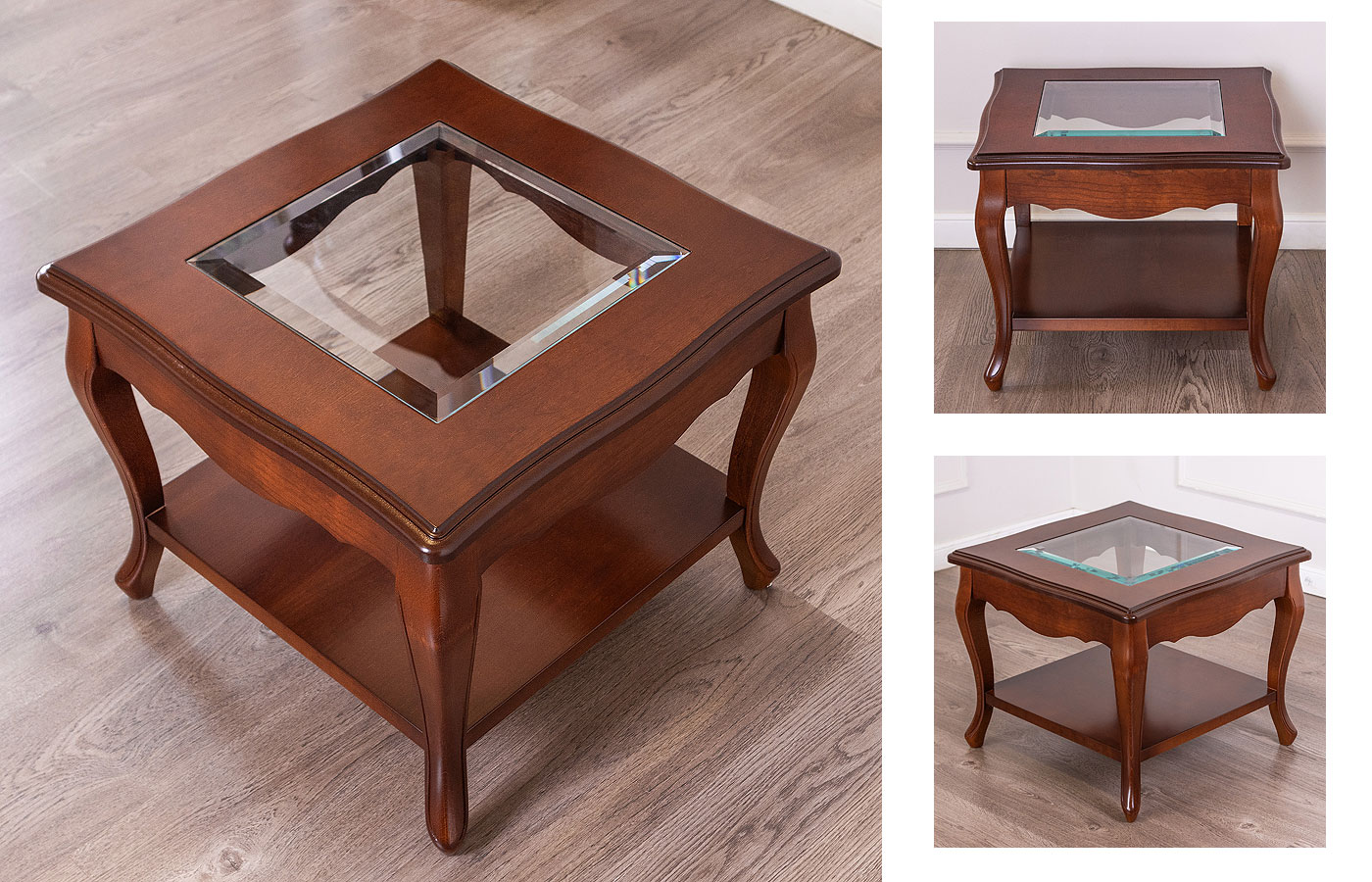 Испанская мебель Disemobel коллекция Classic: журнальные столики Дисемобел со стеклянной или деревянной столешницей на гнутых ножках из массива бука, натуральный шпон, цвет вишня cerezo, орех nogal, белый vainilla. В наличии на складе в Москве, бесплатная доставка, сборка по Москве и Московской области, отгрузка в регионы России и СНГ